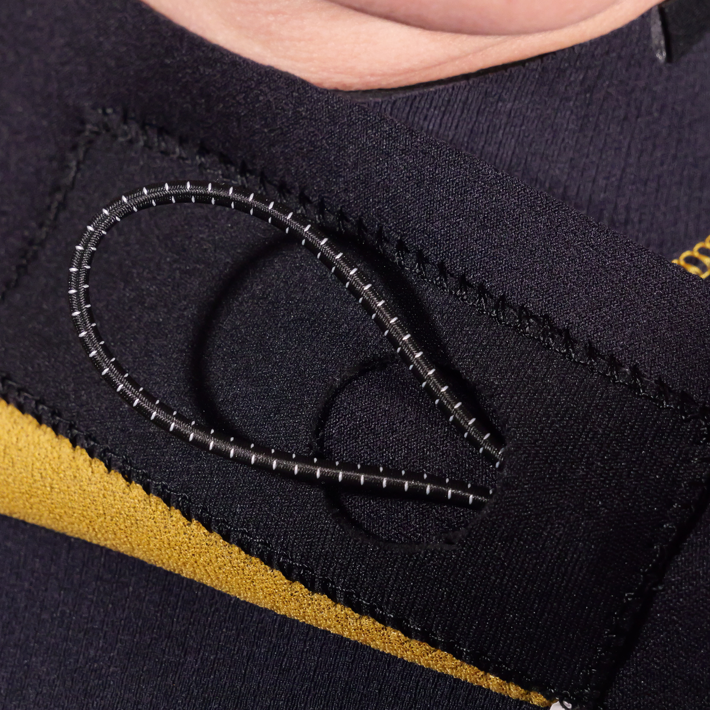 Two elastic tensioners sit either side of the bib, allowing you to tailor the fit. They tuck neatly away under the bib, helping create a close, comfortable seal that limits water entry and keeps the suit feeling secure in the water.