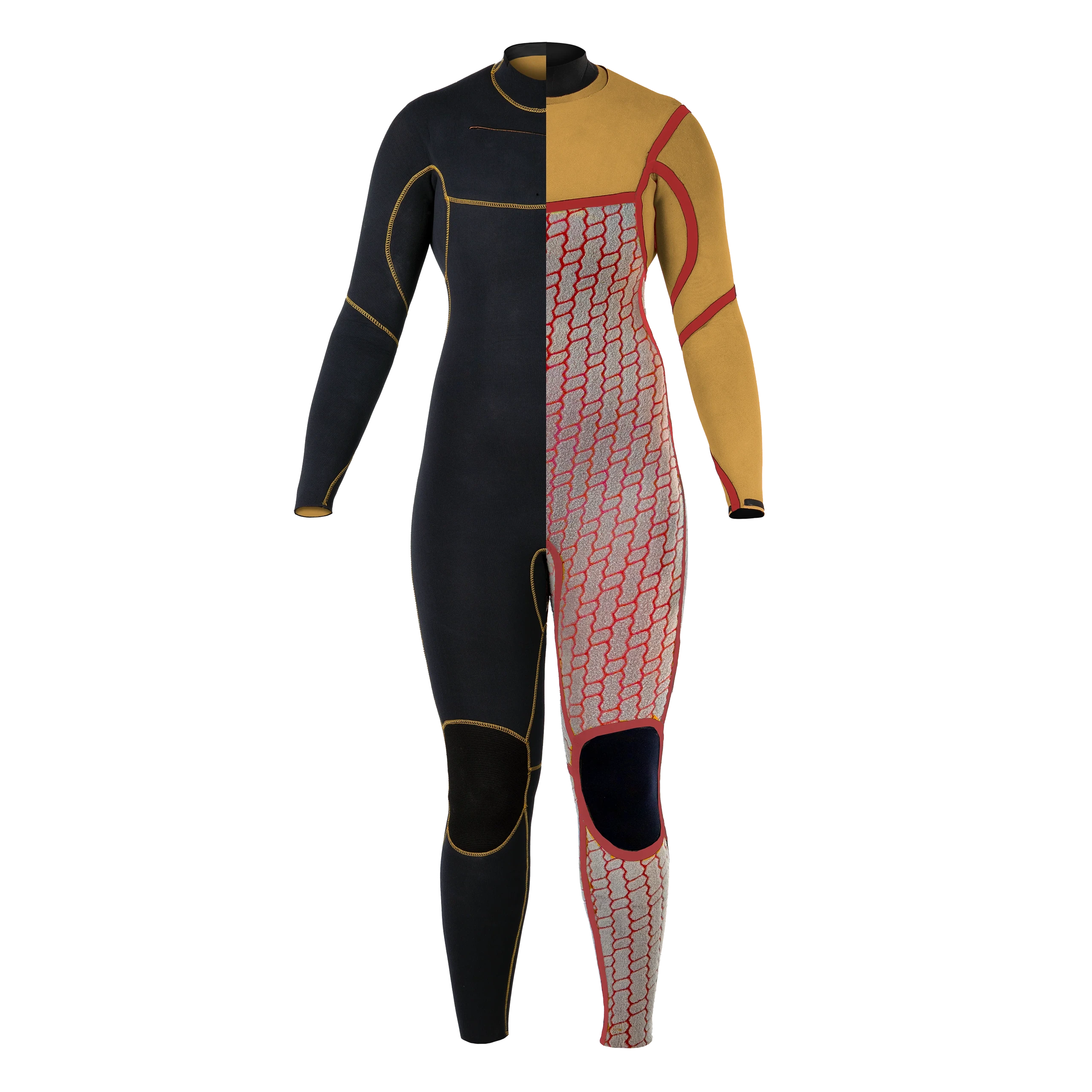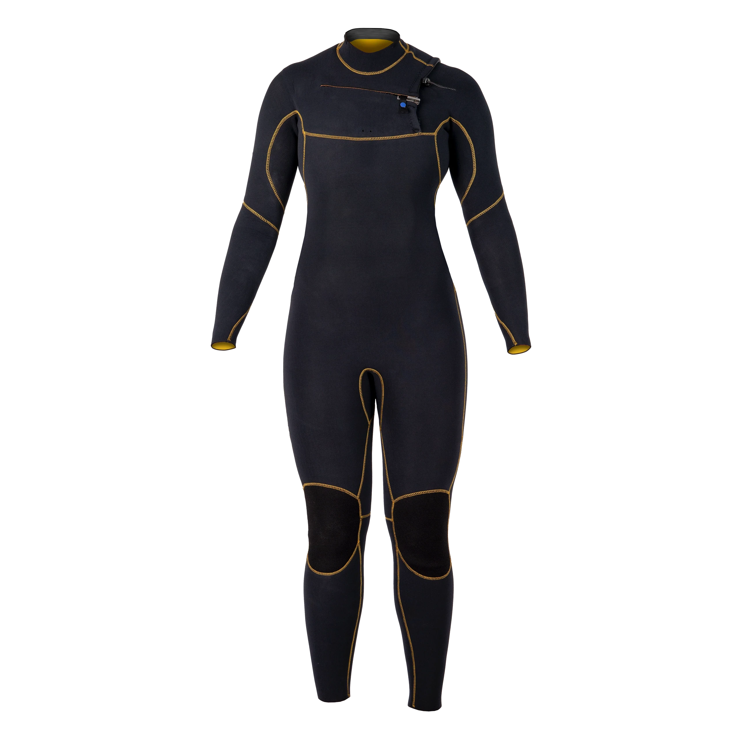 Abrasion resistant knee pads provide extra protection and durability with the aim of extending the lifespan of the wetsuit while improving performance and overall comfort.